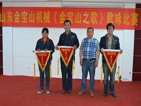 房士奎總經理對獲獎隊伍進行頒獎并發表了講話,房總說,在當前生產任務比較繁重的情況下開展歌詠比賽,一是緩解員工精神壓力,二是鼓舞斗志,凝聚人心,三是豐富職工文化生活,希望大家在生產中要像歌中唱的一樣,牢記“憨孝誠”的企業文化理念,打造精品闖世界,珍惜金寶山的品牌,為客戶提供最完美的破碎機。